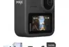 The GoPro MAX Waterproof 360 camera delivers a high-performance experience by combining three cameras in one versatile device. Users can capture traditional HERO-style videos and photos or switch to immersive 360-degree footage in 5.6K30 resolution. The integrated touch screen allows for easy navigation and real-time shot framing, while the 16.6MP spherical photo capability ensures every angle of a scene is preserved with clarity. This GoPro MAX 360 Camera Bundle With SD Card And Cleaning Kit provides the essential tools needed for high-quality production, including 1080p live streaming for real-time sharing.