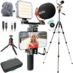 A standout component of this set is the intelligent phone tripod that offers 360-degree rotation and integrated AI technology for auto face tracking. This allows the USKEYVISION Vlogging Kit With Wireless Mic And Auto Tracking Tripod to follow the creator’s movements seamlessly, ensuring they remain perfectly framed during dynamic shoots or solo presentations. The tripod is further enhanced by adjustable LED lights that provide customizable brightness and color temperatures to suit various lighting conditions. Additionally, the inclusion of a ground spike and a remote control extends the versatility of the setup, allowing for creative shots in outdoor terrains like parks or beaches.